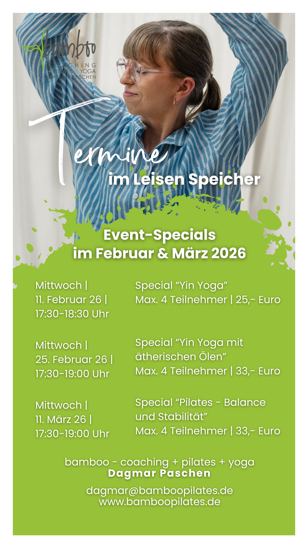 Mit Coaching, Pilates, Yoga und ätherischen Ölen kannst Du Dein Leben ganzheitlich und aktiv gestalten – ich begleite Dich dabei.